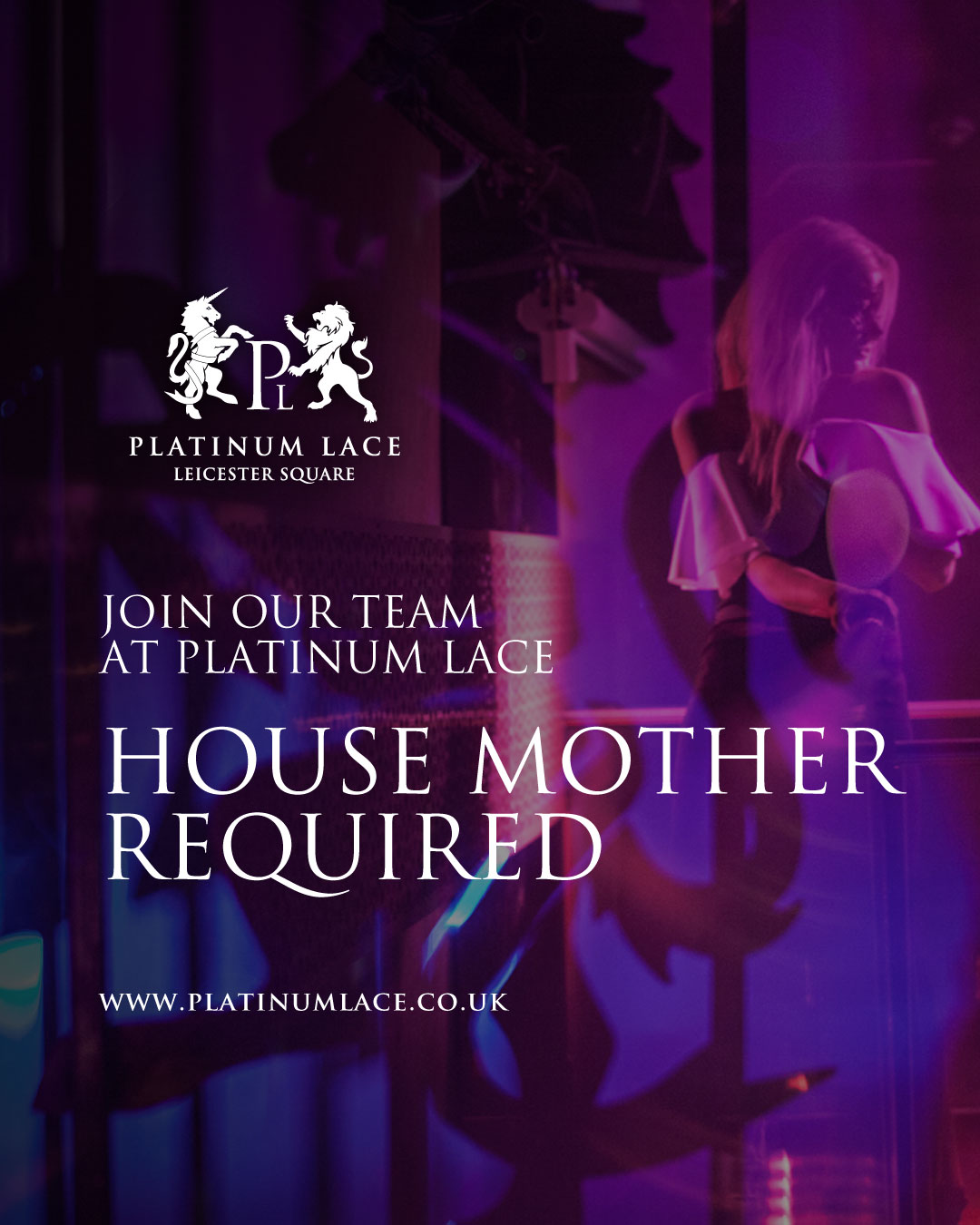 For informal enquiries about the role, feel free to contact us via email at leicestersq@platinumlace.co.uk.